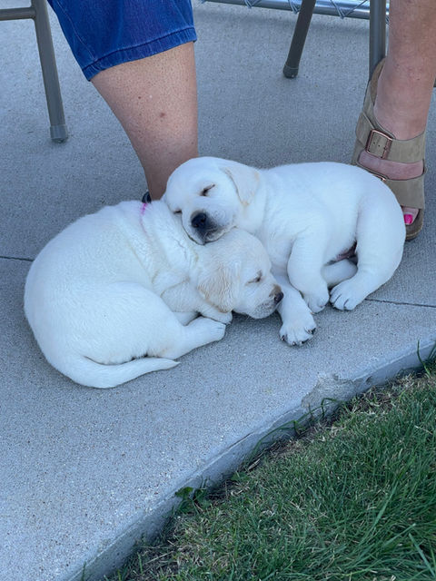 At Gramp's Creek Kennels, we specialize in breeding pure bred, light-colored, yellow English Labrador retriever puppies. Known for their calm and sweet temperament, our puppies receive Early Neurological Stimulation to ensure their well-being. We don't ship puppies; instead, we offer pick up or meet up options only. Our dedication is to provide you with a loyal and loving companion that brings abundant joy to your life.
